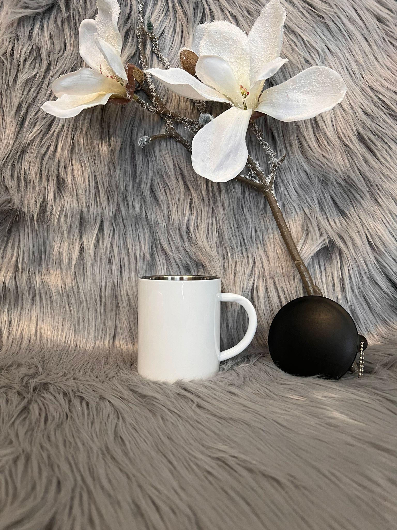 Edelstahltasse weiß mit Deckel, 10 oz (ca. 295ml), inkl. Druck