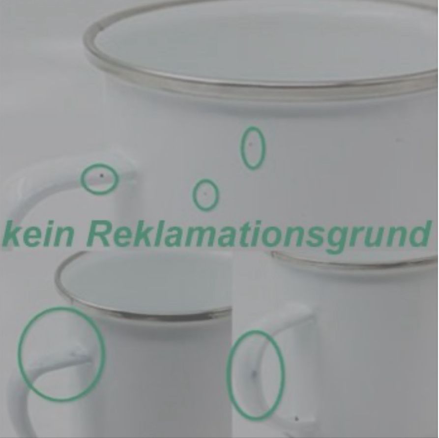 Unregelmäßigkeiten sind durch den Herstellungsprozess von Emaille-Produkten begründet und stellen daher keinen Reklamationsgrund dar.